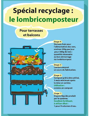 Le « bac à lombrics »,peu encombrant, est composé de vers de terre et de déchets de cuisine qui sont absorbés par ces petits animaux jusqu’à produire des engrais puissants,plein de minéraux et d’oligo-éléments dont raffolent les plantes et jardins.